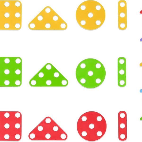 El set trae tableros multicolor, tornillos y herramientas básicas; permite varios proyectos y se guarda fácilmente en su tablero maletín.