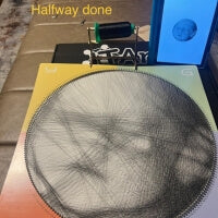 Incluye lienzo preperforado con patrón, clavos, hilos, adhesivo, soporte, jute y guía paso a paso para empezar al instante.
