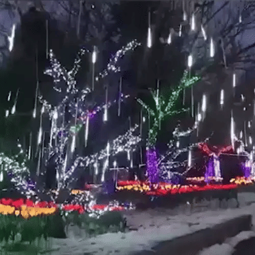 Cada paquete incluye tubos con luces LED que simulan una lluvia de meteoros brillante y colorida.