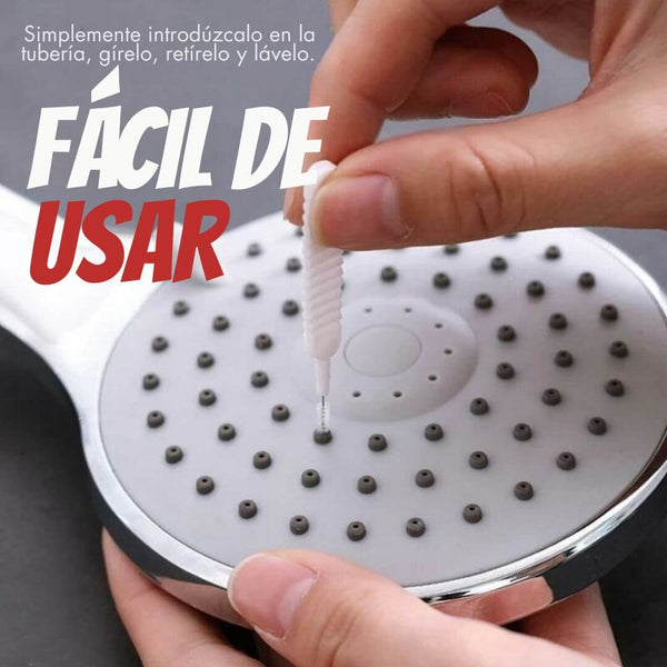 Olvídate de esos chorros de agua que salen hacia todos lados al ducharte. Con nuestro cepillo, podrás limpiar los orificios de la regadera de manera eficiente, asegurando un flujo de agua uniforme que mejora tu experiencia de baño.