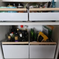 Falta de espacio bajo fregadero por productos y limpieza